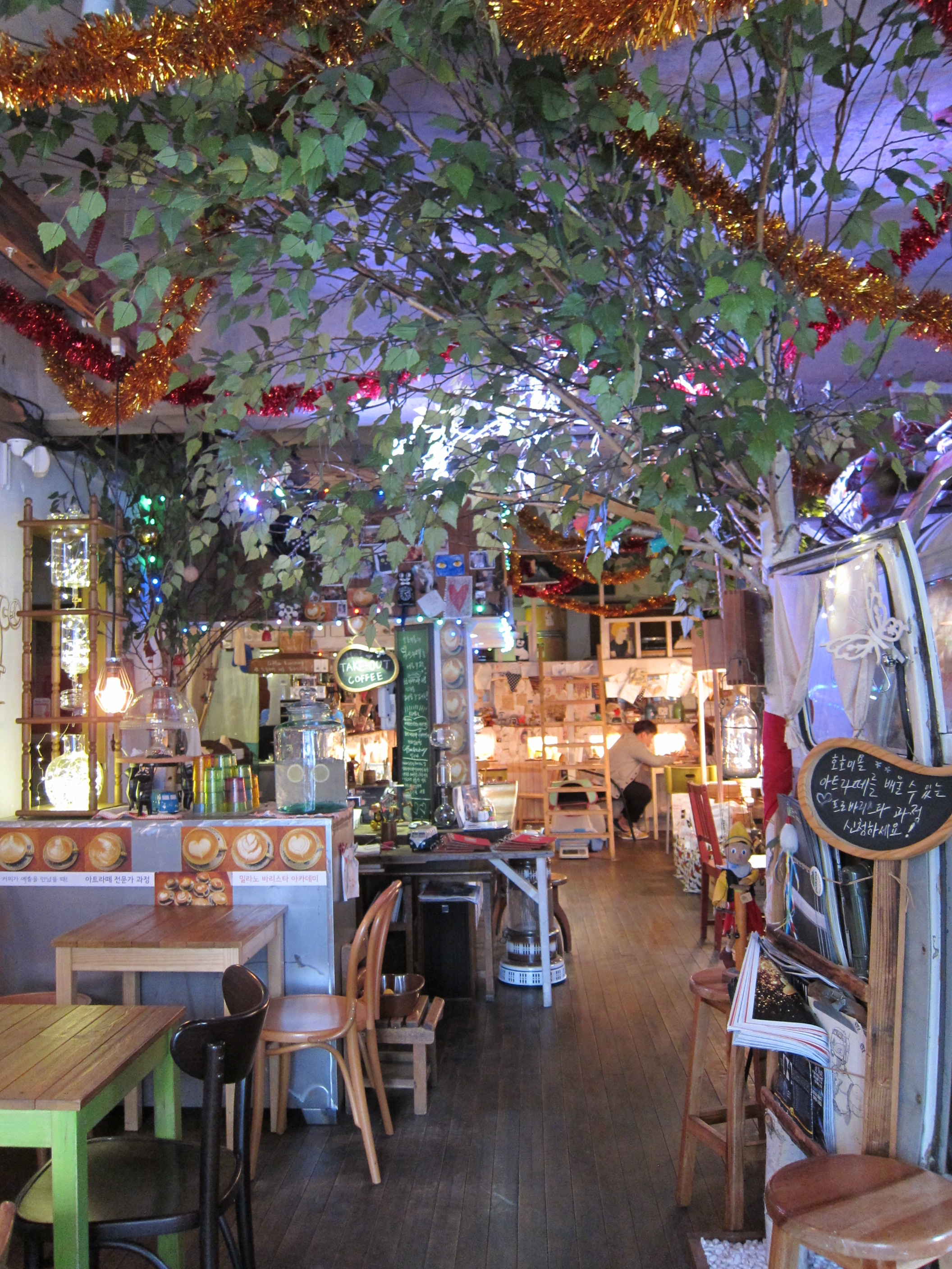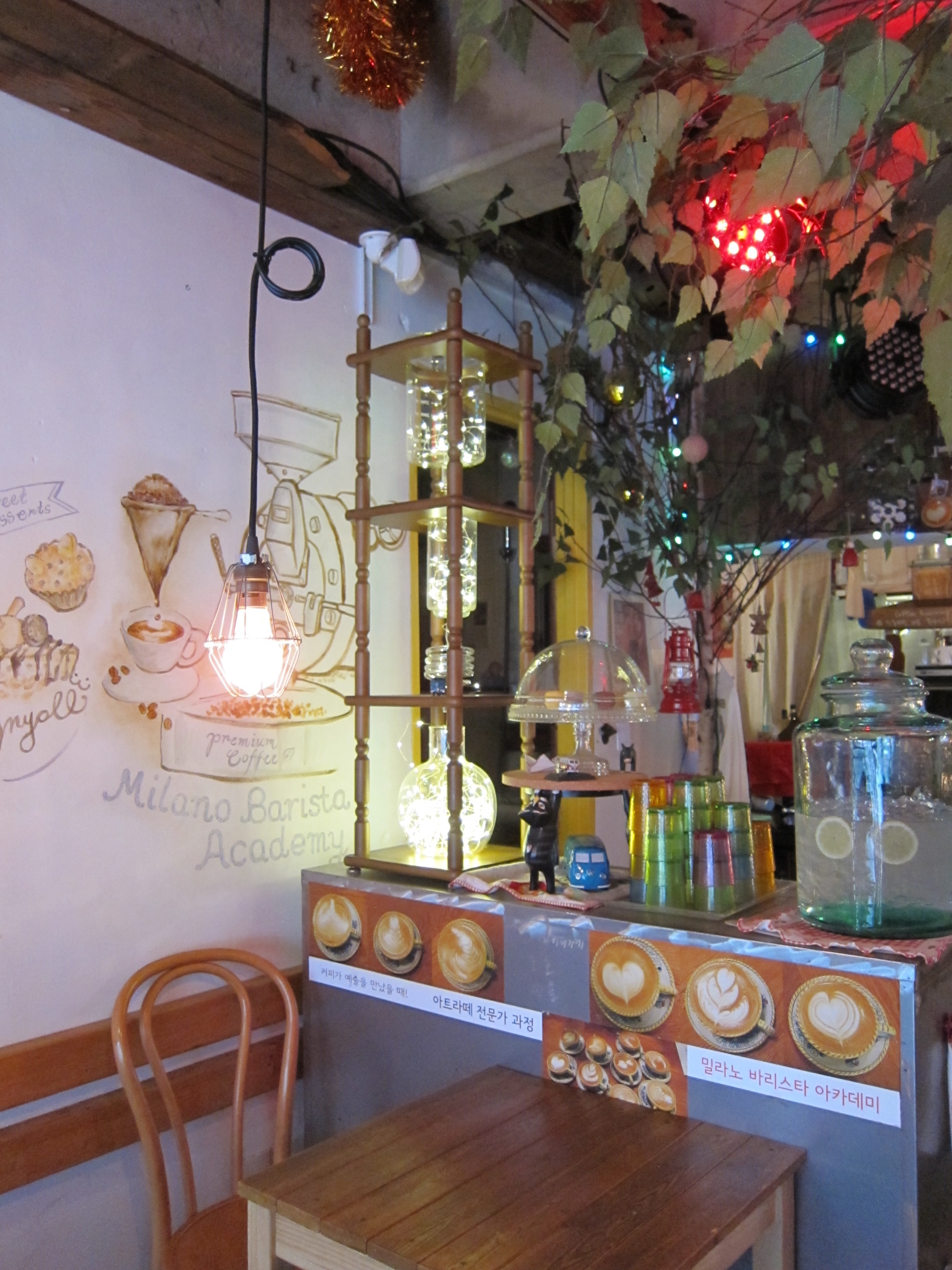 I was in the Hongdae (홍대) and Sangsu (상수) area this weekend, and of course, I forgot my umbrella and it started to rain. To dodge the rain, I stumbled into the nearest café I saw, and to my delight it was one of the cutest cafes ever!