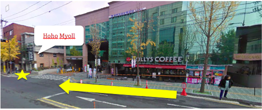 Directions: Take Line 2 to Hapjeong Station, transfer to line 6 and get off at Sangsu Station exit #2. Turn left and keep walking straight for around 3 minutes. Hoho Myoll is just past the Hollys Coffee on your right.