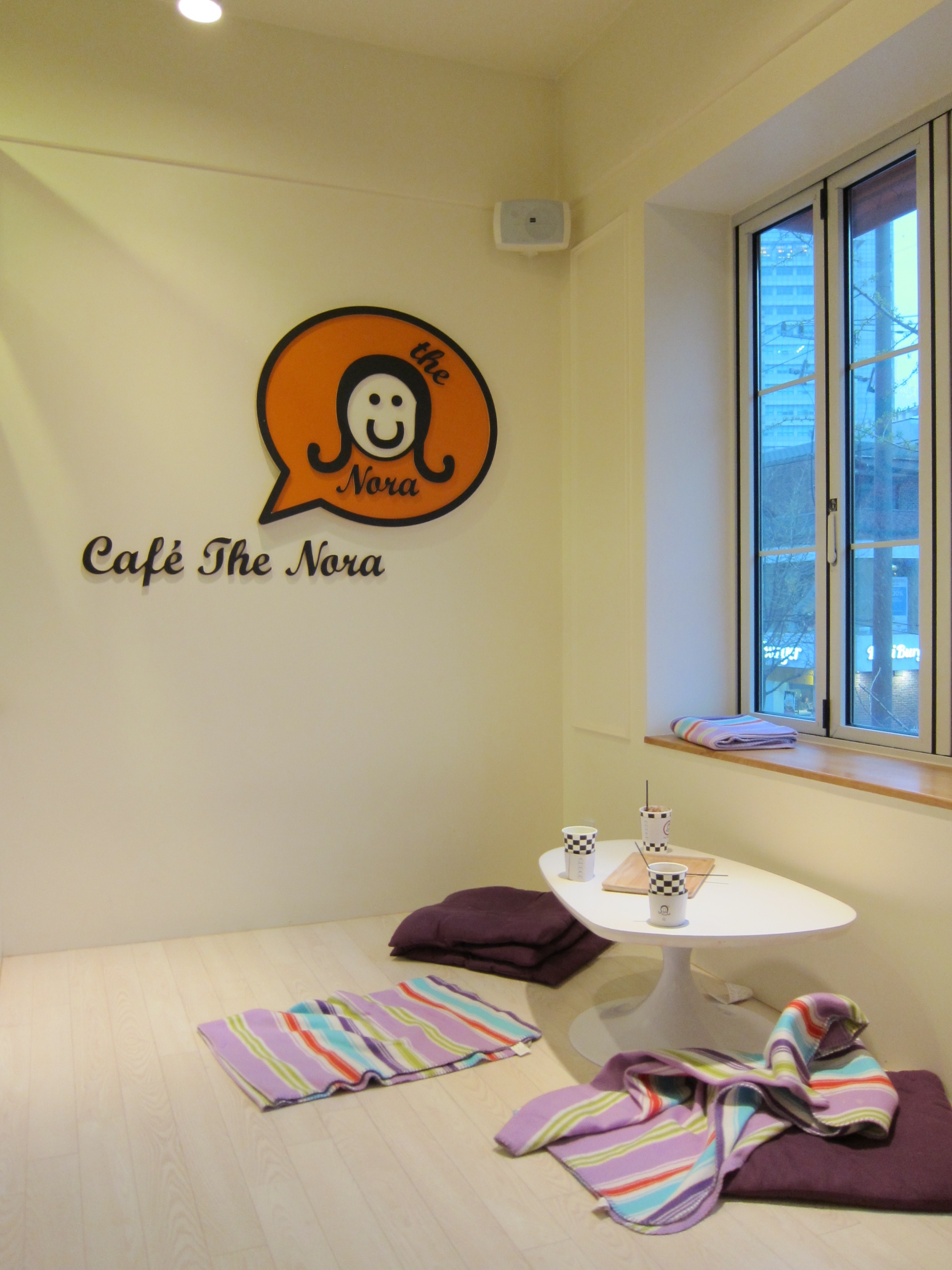 Café the Nora is an adorable café filled with colorful decorations and bright colors. There are plenty of tables, booths with window views of the street below and even a quiet secluded corner where you can sit on the floor. They have an extensive drinks menu, and even give you free lollipops!