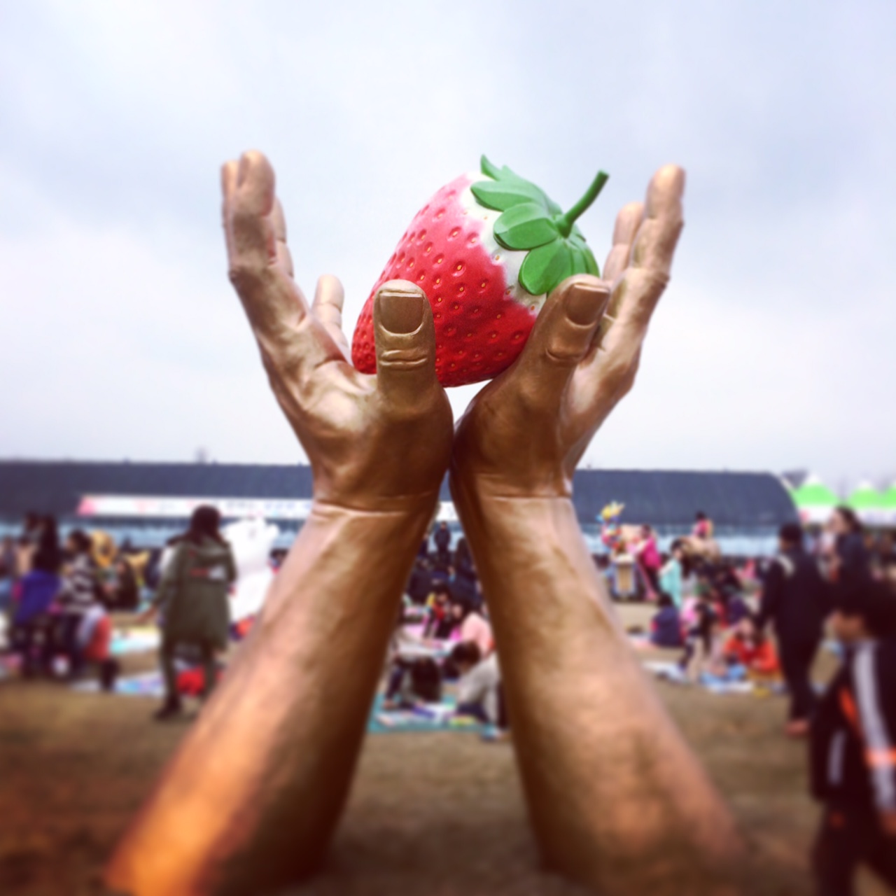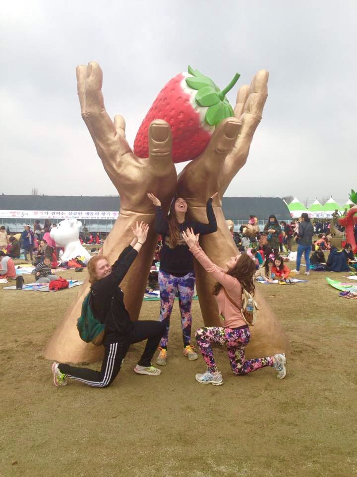 Every April there is a strawberry festival over the weekend in a little town called Nonsan in the province of Chungcheongnam-do. It is a two-hour bus ride outside of Seoul and worth every minute of the journey! The bus ride to Nonsan is beautiful; you pass mountains, farms, and towns. Traveling by bus is a great idea because the buses in Korea are very nice and comfortable and you can either recline and sleep or enjoy the sights of Korea that you would otherwise not see. Korean families mainly attend the festival, so it is really nice to see all the families together with the children playing, painting, and enjoying the performances.