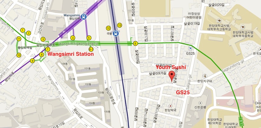 If you’re craving some delicious fish, then Youth Sushi is definitely your next stop. With a petit but cozy interior, this restaurant brags the best sushi for your buck near Hanyang University. Prices ranging from 7,000 won to 15,000 won for the main dishes, their sushi sets are, of course, the most popular.