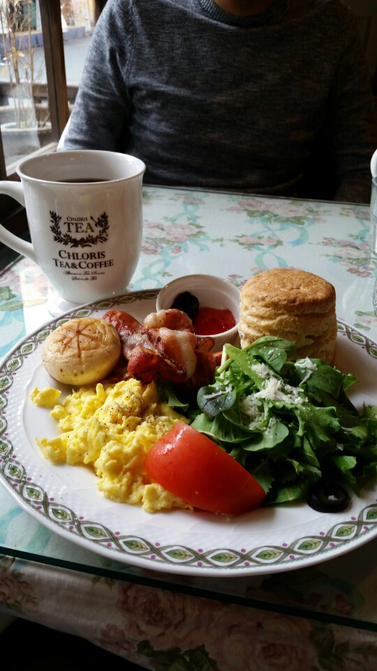 Chloris Tea Garden is located in Sinchon, and it’s a great spot for teatime with friends, or what I like best about it- brunch! If you’re craving for a delicious Western style brunch, this is a good place to check out. I ordered a brunch set with eggs and sausages and it did not disappoint! It came with a side of salad, a biscuit, blueberry and strawberry jam, bacon, sausages, mushrooms, eggs and your choice of hot or cold coffee or tea.
