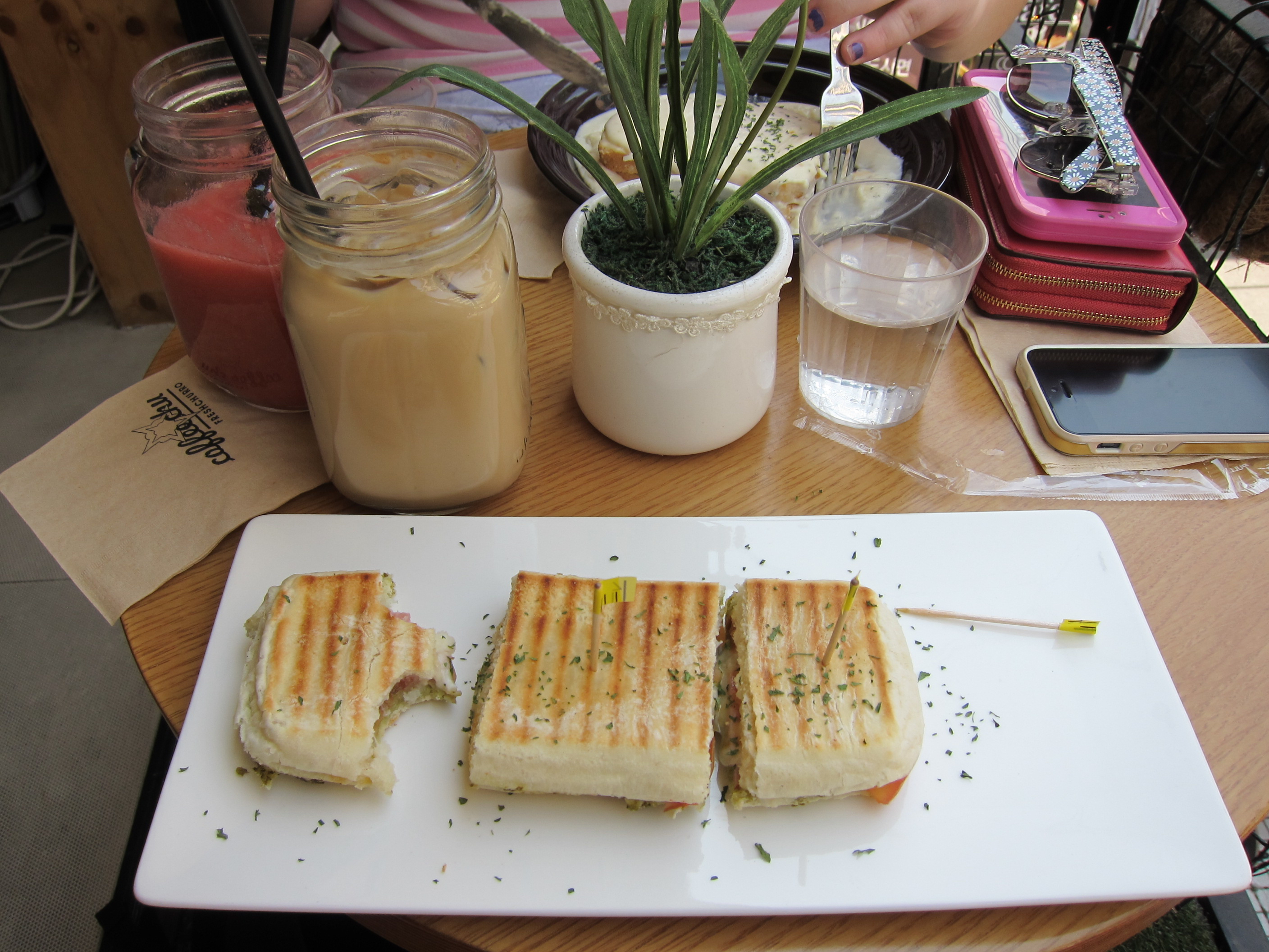 Coffee Chu boasts an impressive menu, especially for churros! They have a plethora of churro snacks and dessert, and even make a churro hot dog! It’s similar to a regular hot dog but the hot dog buns are replaced with a churro. I chose to go with a pesto panini and it was absolutely scrumptious. I didn’t even remember to take a picture of it until I was already a few bites in!