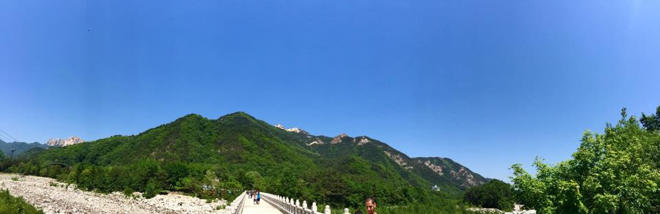 This trail is great for anyone who wants a simple and easy hike. The course is very flat and well paved for most of the way except for a short stretch to the waterfall peak which required some effort through stairs and steeper rocks. Throughout the hike you can see various greenery and insects that are native to Korean natural life and also many different angles of the waterfall and river paths that the water pours into. There is a massive suspension bridge near the top of the course which has a beautiful view of the surrounding green mountains and water below. Within one hour we reached the peak of the waterfall. When we arrived we saw that many hikers had situated at a spot near the bottom of the fall to either picnic or take a rest on the large rocks while dipping their feet in the refreshing water from the falls.
