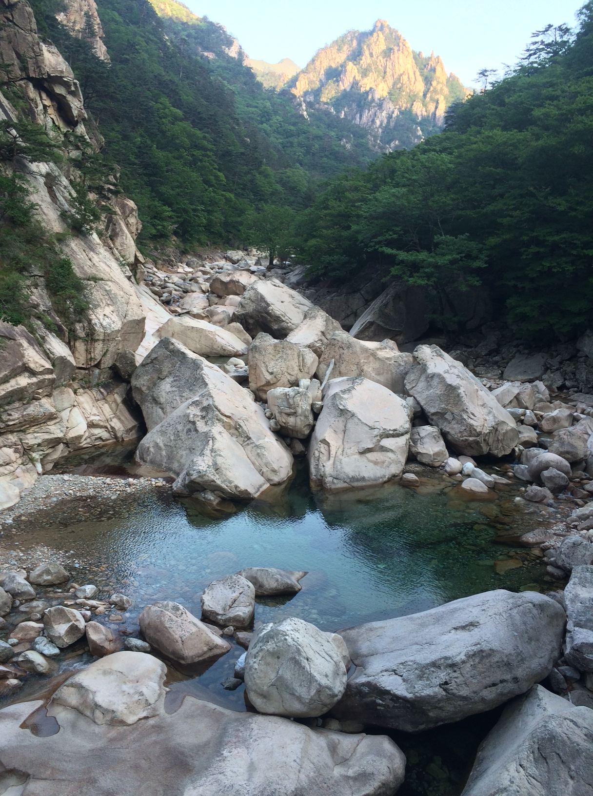Seoraksan has trails differing in length, difficulty, and view. There are shelters all throughout the park if you are planning an overnight hike, but these must be booked weeks in advance. The trail I decided to take was from the part of the park at Osaek- ri (오색리). I took a bus to Osaek from Sokcho (40 minutes) at 8:50am and started hiking by 9:40. This trail is one of the most popular for tourists because it is the shortest way to Daechongbong Peak (대청봉). The way is very steep and it took me about 3 hours (plus blood, sweat, and tears) to reach the top which is approximately 5 kilometers. Many hikers go up and take the same way down, but if you are feeling adventurous, you can go down the other side of the mountain and take the 7-hour downhill hike to Seoraksan Park entrance. While after a few hours the hike was grueling, it was totally worth it. The trail takes you through the valley of the park and you see waterfalls, crystal clear ponds, huge rock formations, and chipmunks everywhere. It really was breathtaking. I recommend not doing this hike alone so you have some companionship and in case you hurt yourself. This is normally a 2-day hike but we did the 10 hours in one day, passing all the shelters along the way. Finally, do not forget to bring LOTS of water. There is water for sale at the shelters but nowhere to just fill up your bottles. :D