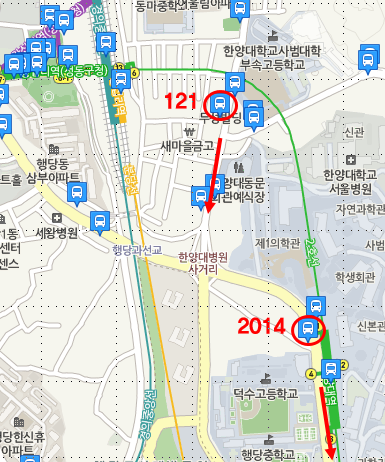 You can go to Seoul Forest by 3 ways. First, on foot. It takes about 30 minutes at a slow pace, from Hanyang University Station (한양대역). Second, by bus. Take bus 121 or 2014. I recommend 121 if you are near Wangsimni Station (왕십리역), and 2014 if you are near Hanyang Univ. Station. Third, by subway. This choice has two sub-options as well. You can either get off at Seoul Forest Station (서울숲역) on the Bundang Line (분당선) or Ttukseom Station (뚝섬역) on Line No. 2. For your information, Line 2 and Bundang line goes through Wangsimni Station and while Hanyang Univ. Station has only Line 2.