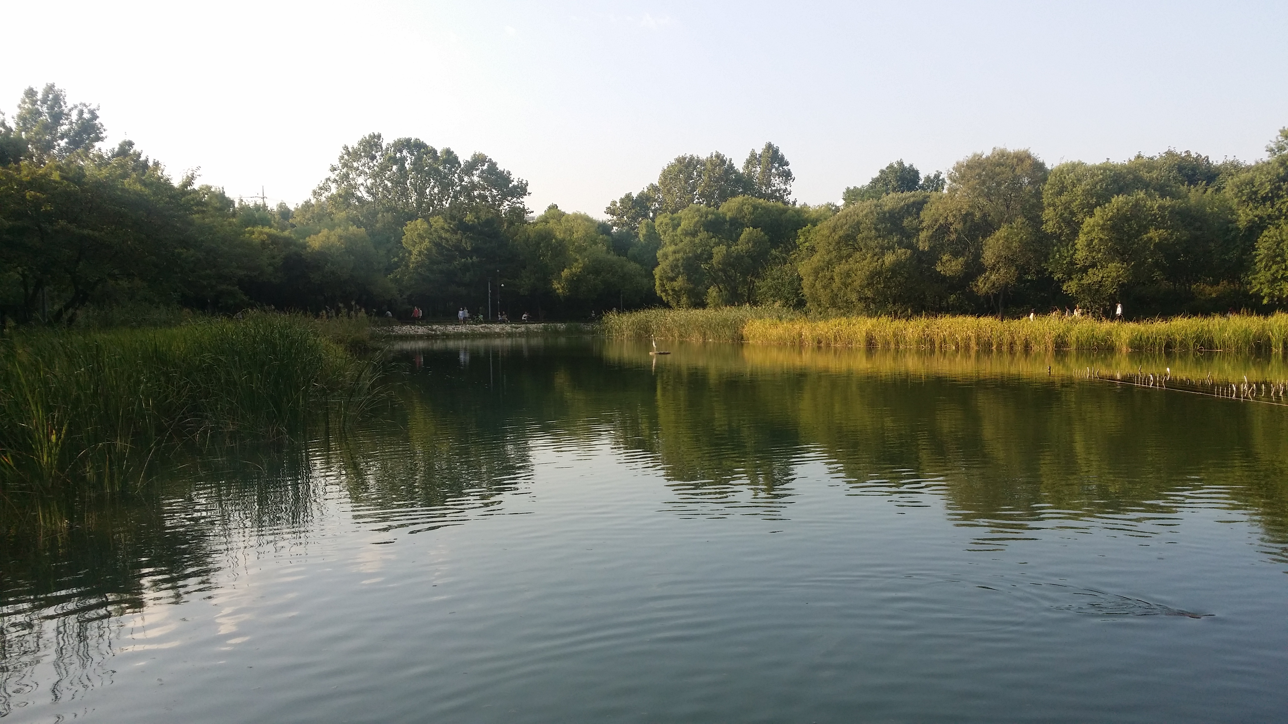 On the way back from feeding deers, you can see a lake with bridges and a big fountain. There are crucian carp in the lake.