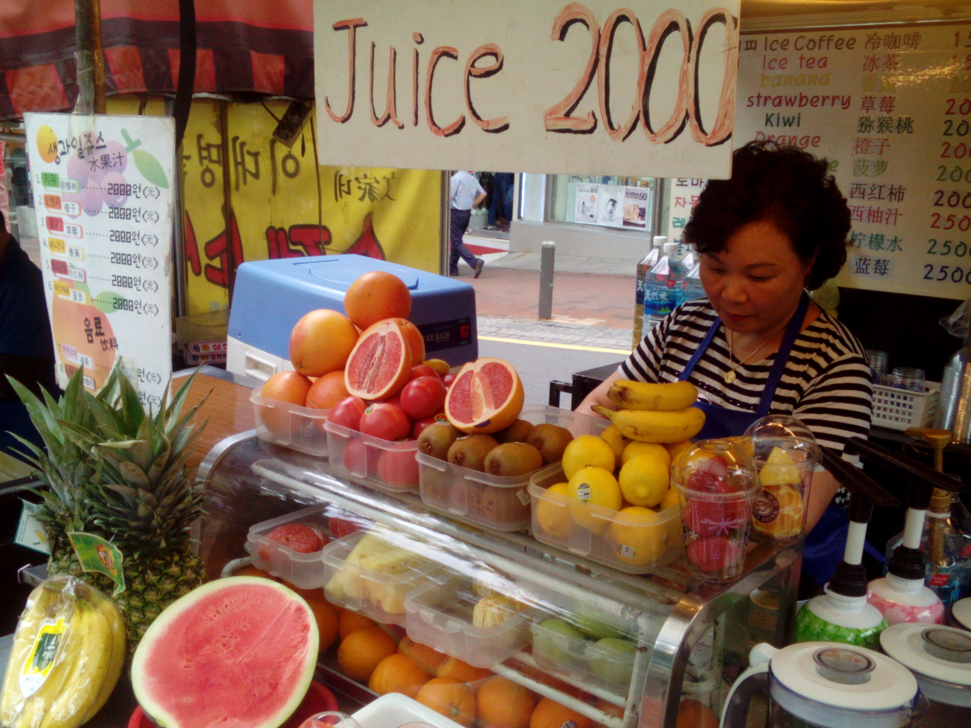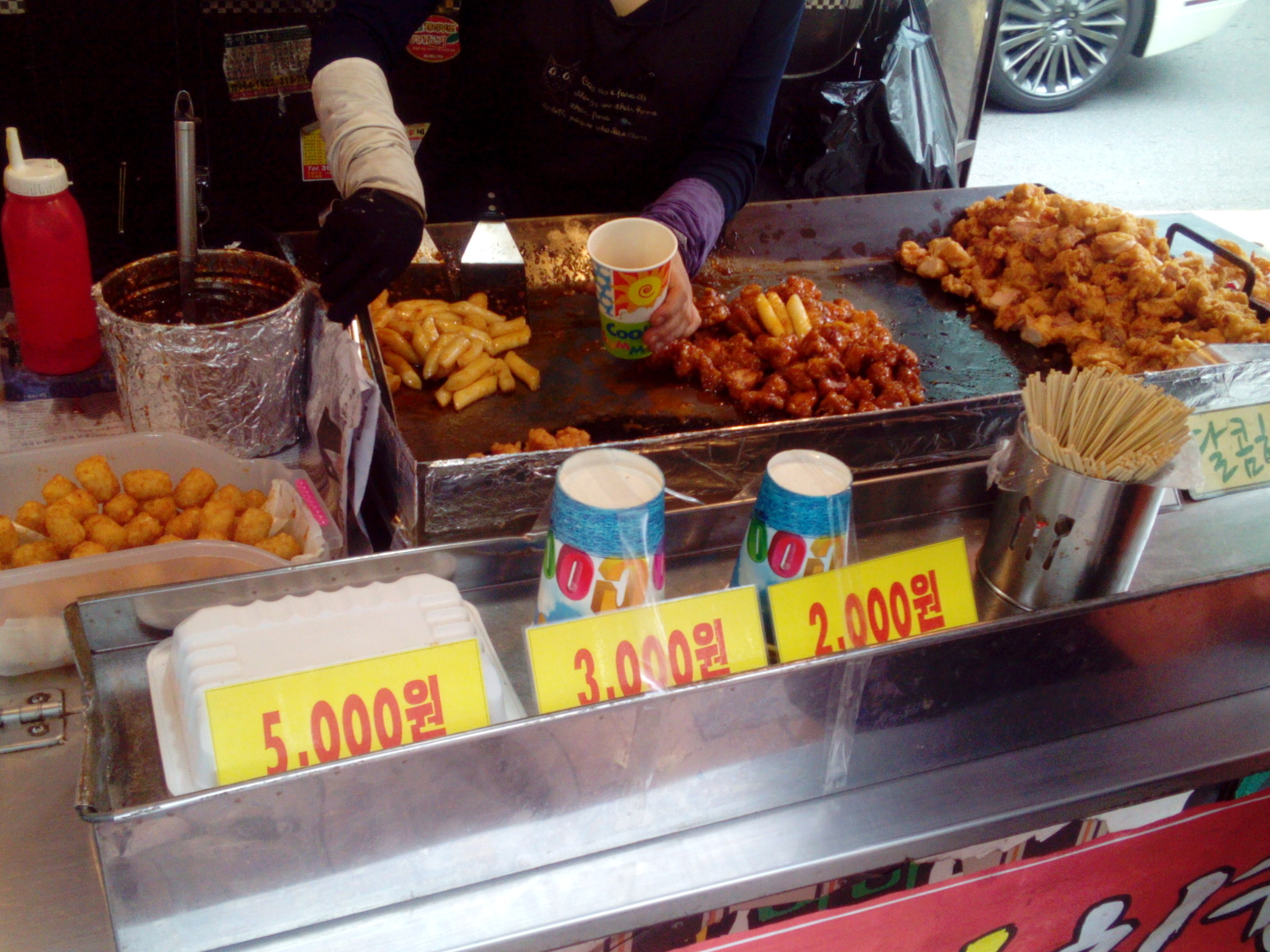 This place not only good for shopping but also for trying Korean street food. Here you will find stalls owned by friendly Koreans who will be only too happy to sell you a cup of fried chicken and tteokbokki starting from 2000 KRW. If you like seafood you might get tempted to try some freshly cooked octopus. However, if you are not hungry at all, you can always get a freshly squeezed fruit juice for 2000 KRW.