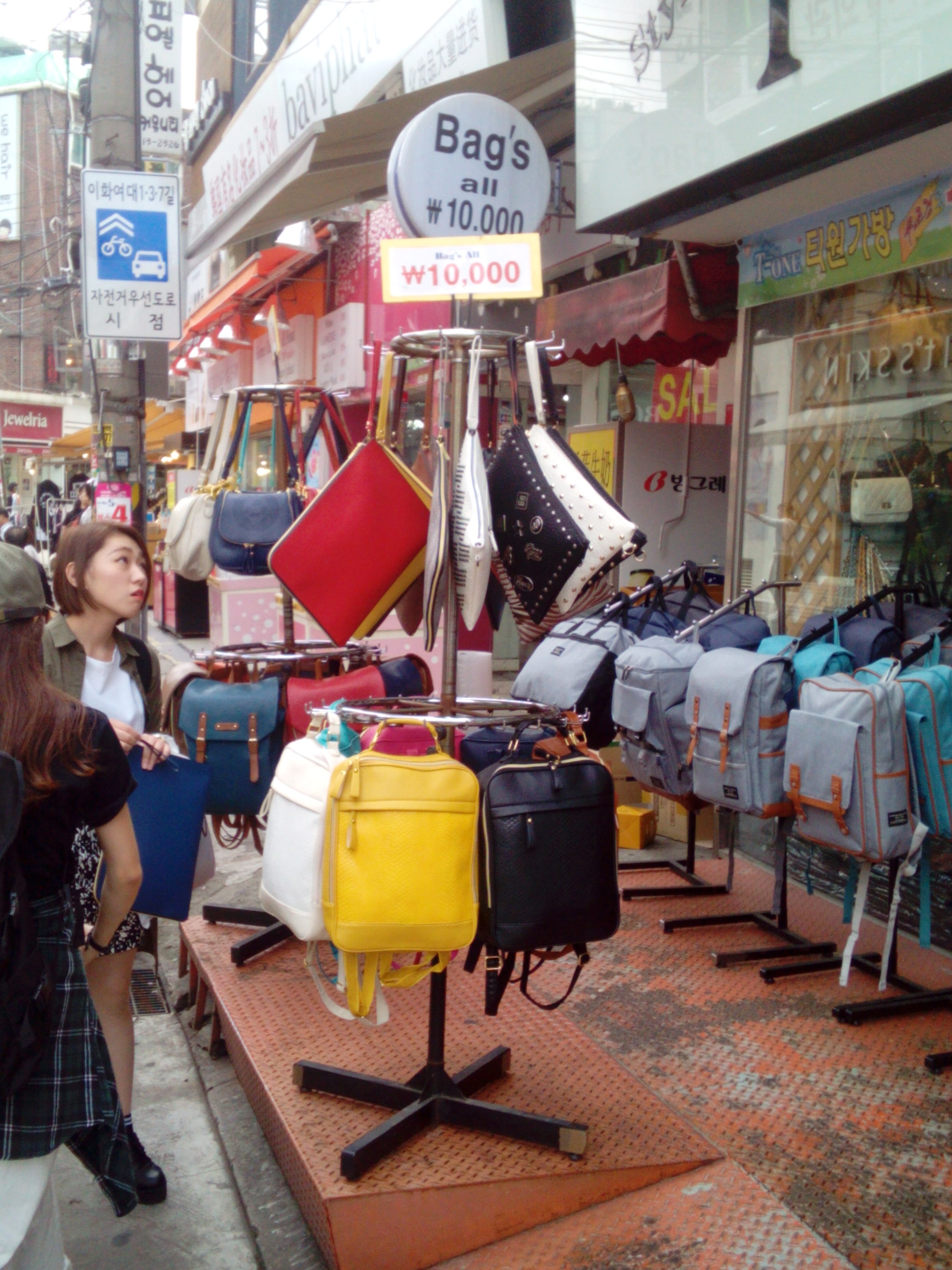 You will also be surprised that there are shops that sell different kinds of bags for only 10 000 KRW. If your school bag is too small and all your books are falling out, then visit Ewha street shops. I can guarantee that you will find something that you like.
