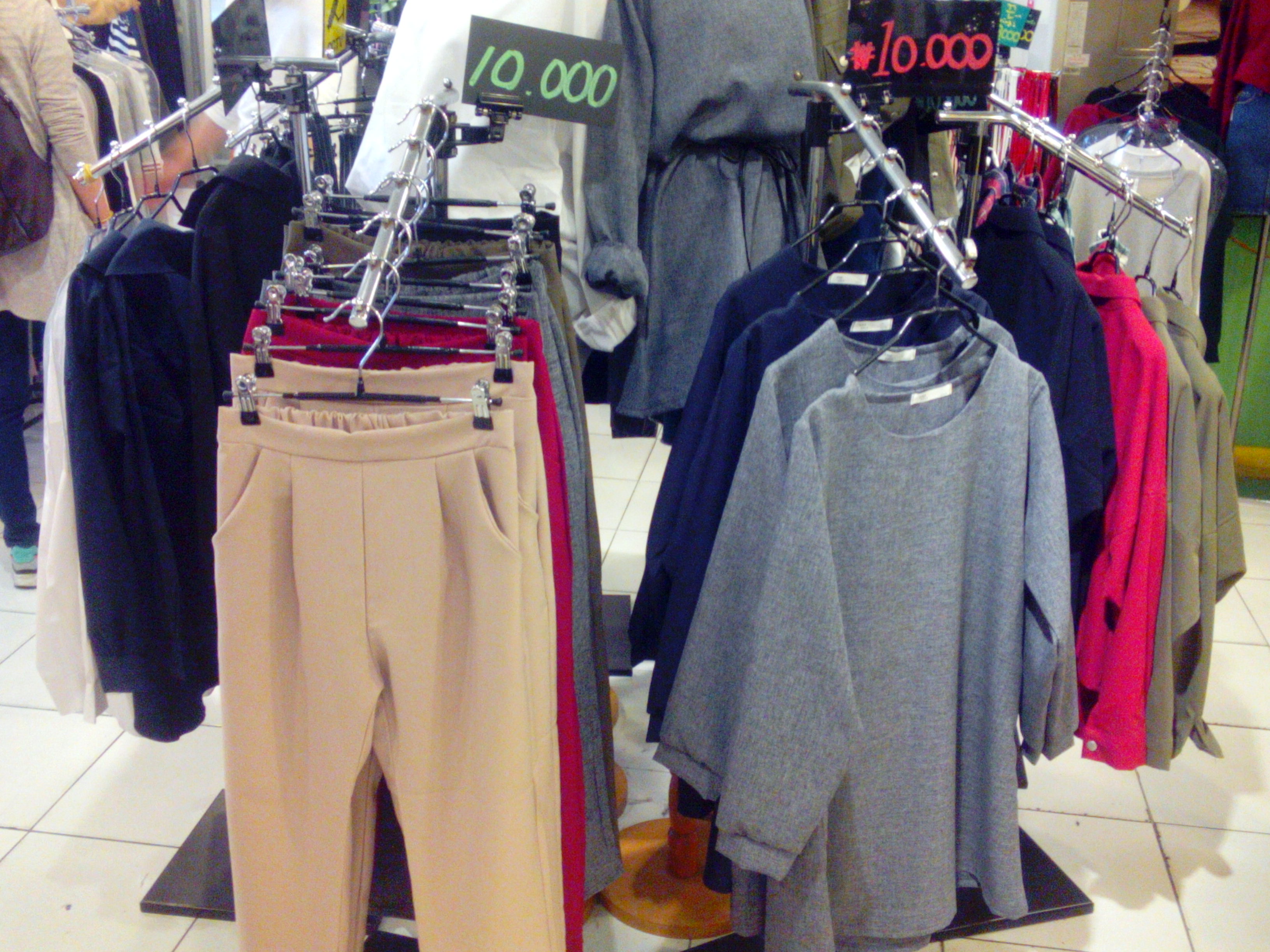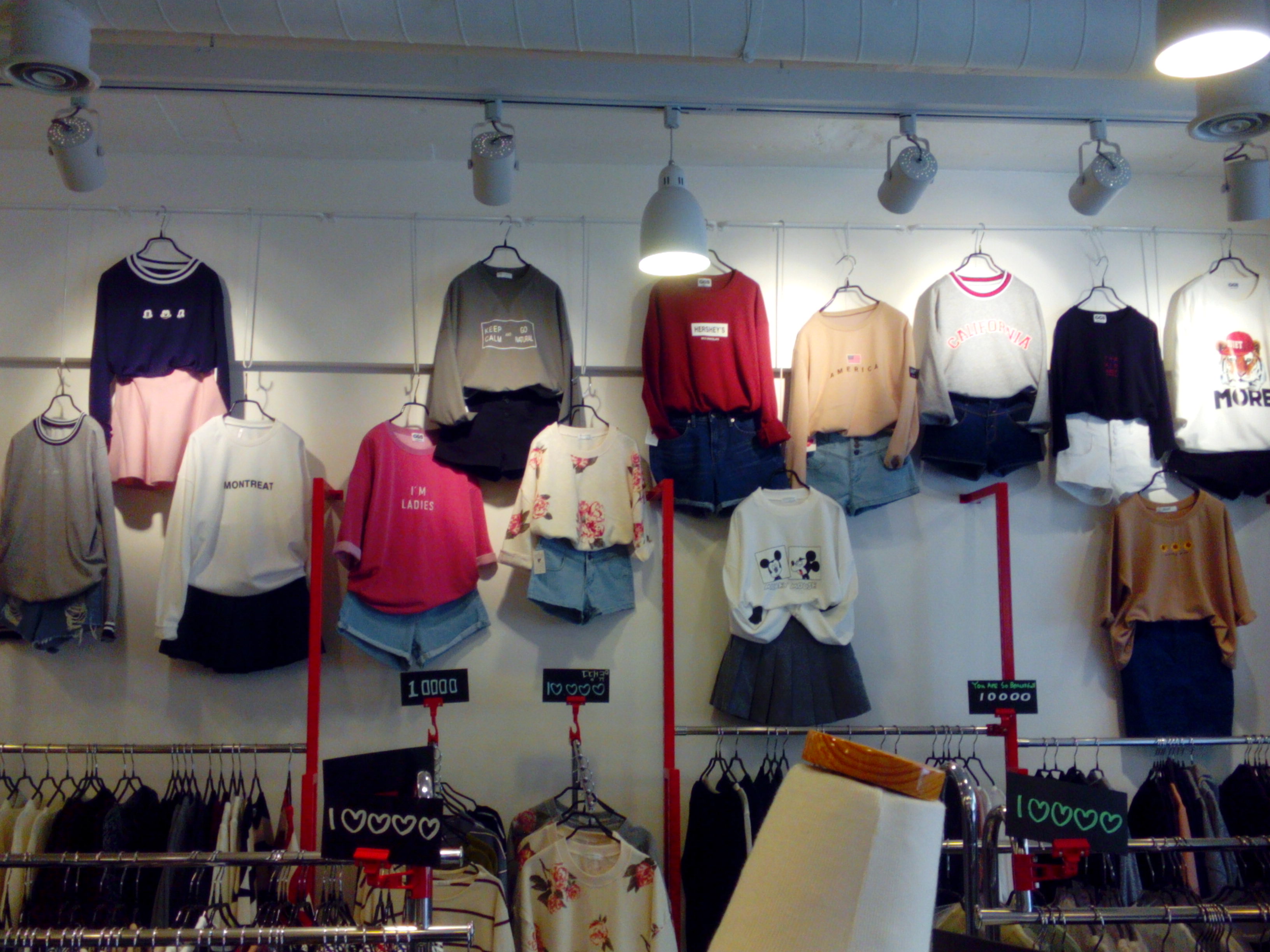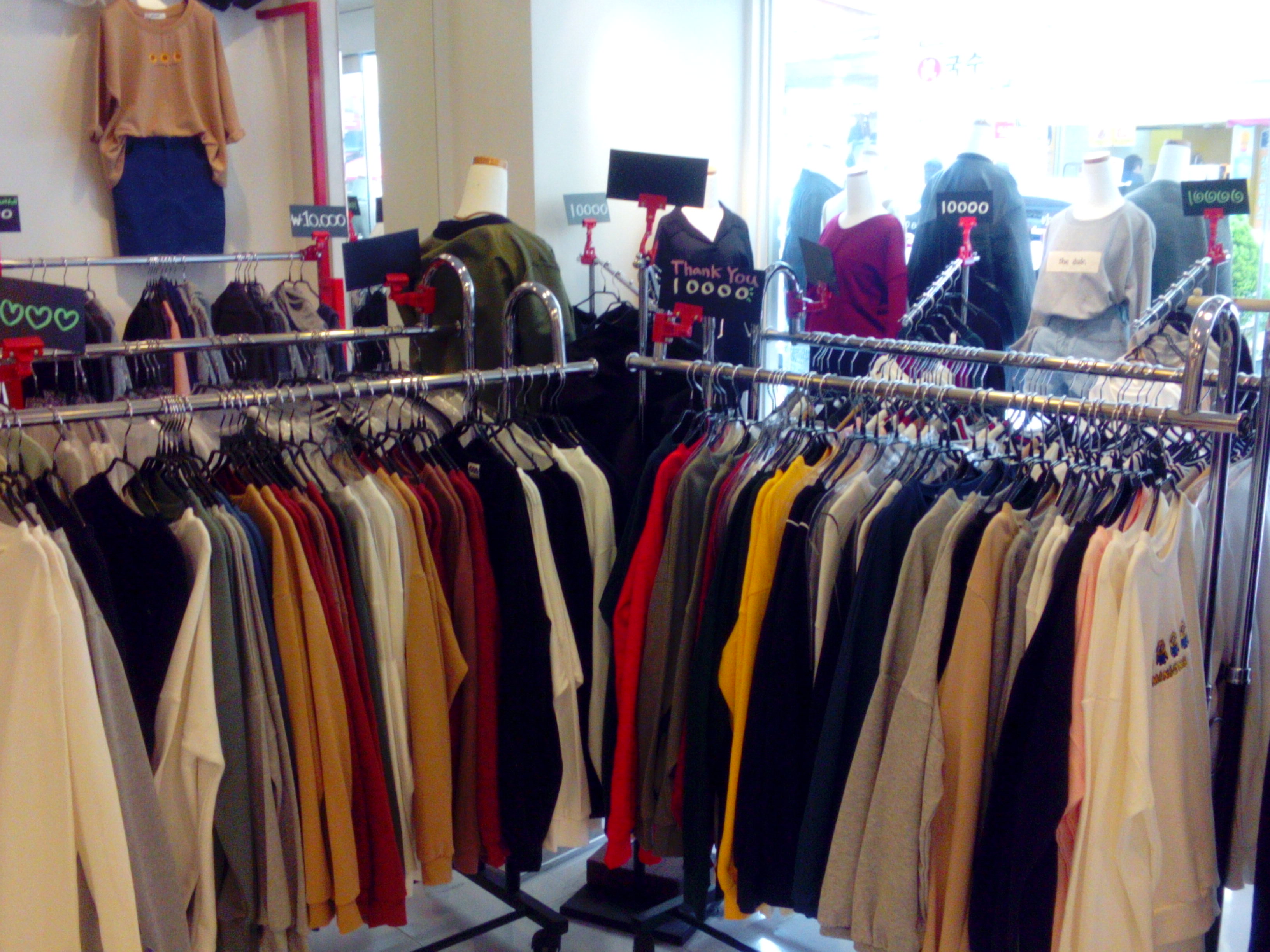These shops don’t only offer you shirts and blouses, you can also buy good quality jeans, trousers or skirts for about 20 000 KRW. However, you need to be sure that these clothes are going to fit you perfectly as in most of the shops you will not be allowed to try any of the clothes on. Some of the stores might let you try on trousers, but all types of tops should be purchased without visiting a fitting room.