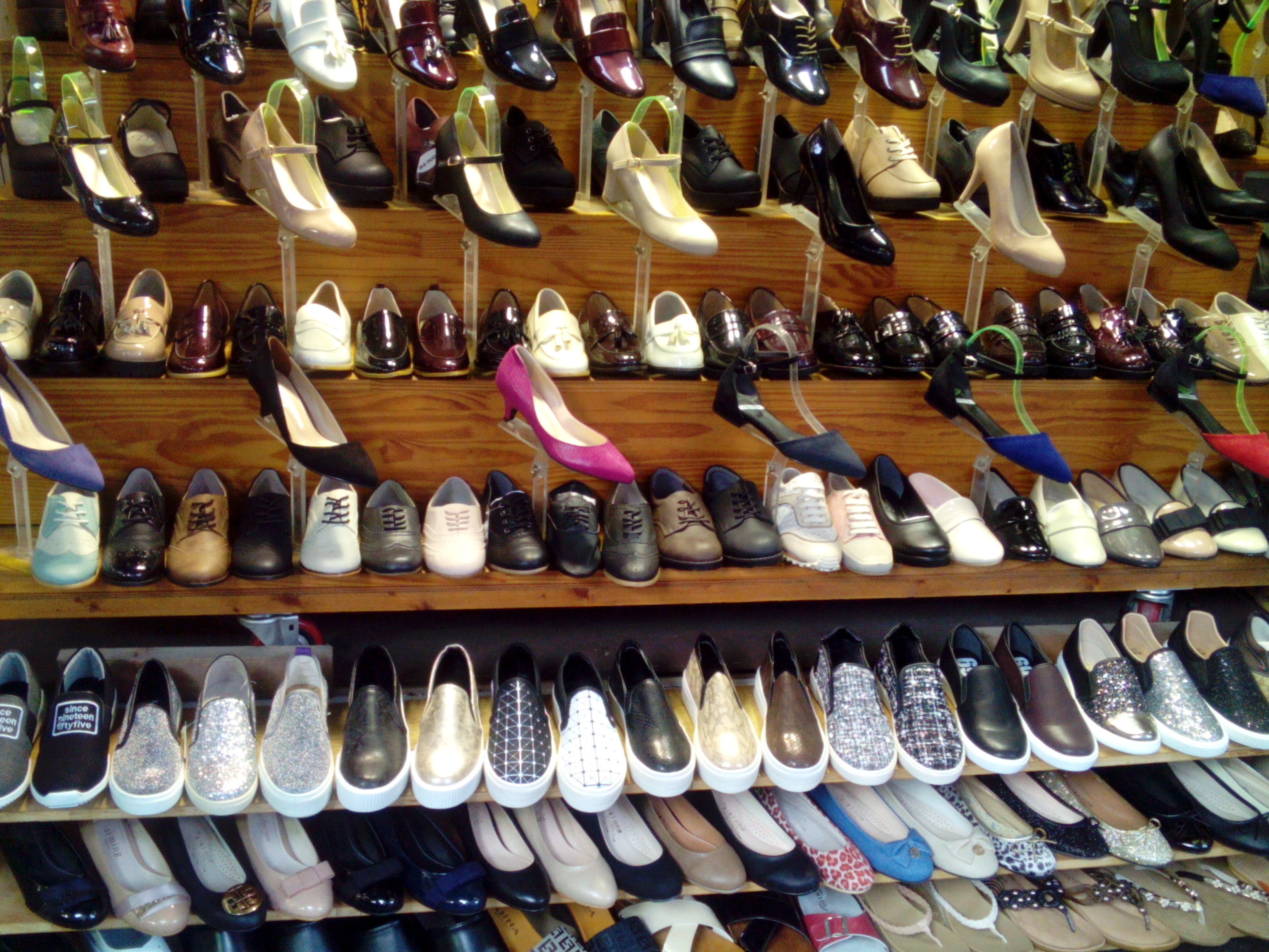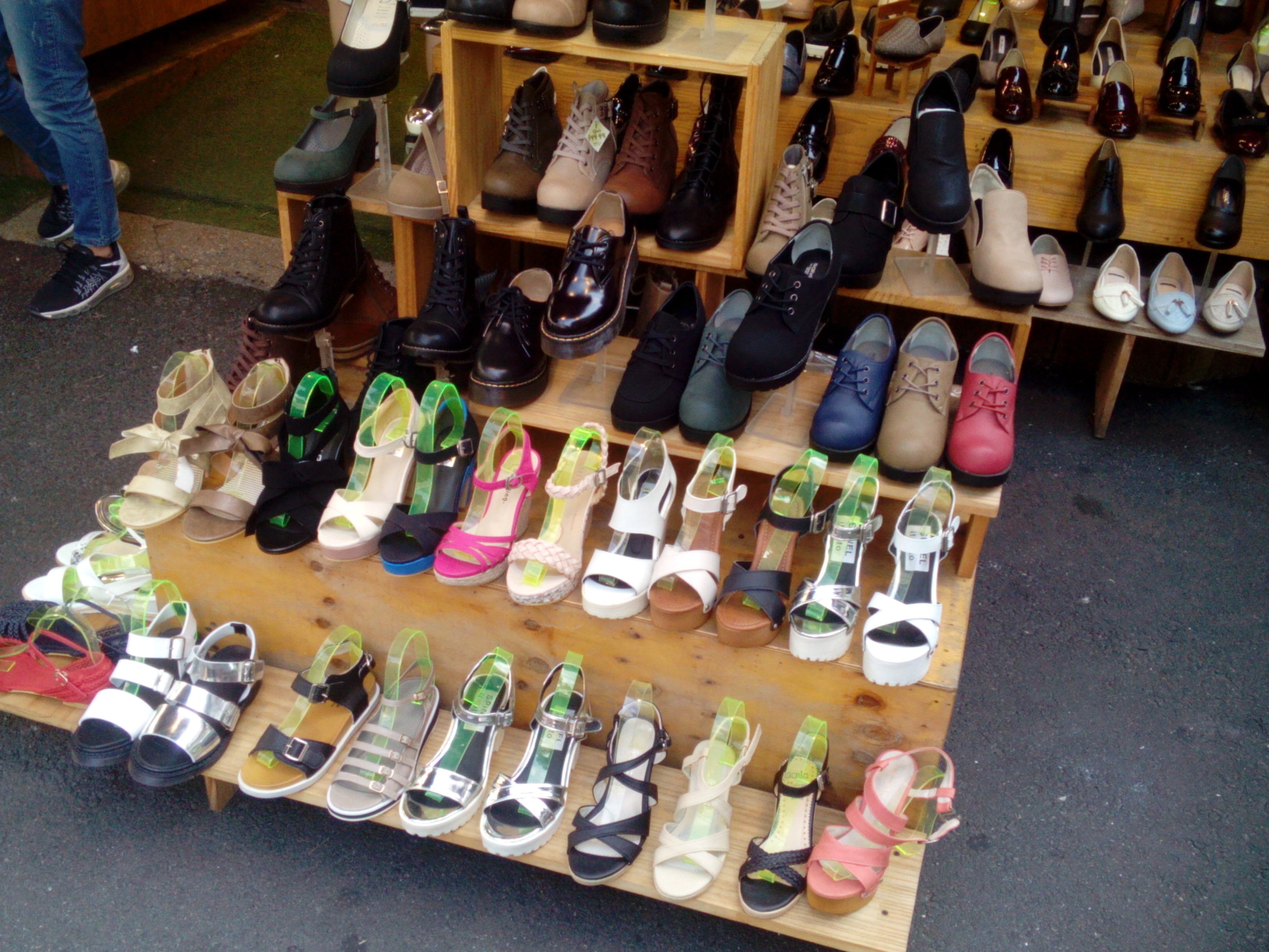 If you are looking for a pair of stylish shoes, then Ewha street shops will provide it for you! You can purchase various types of comfortable shoes here. The shops claim that most of their shoes are handmade and of course come from Korea. They offer sneakers, pumps, high heels, office shoes, boots and even running shoes. Prices mostly start from 19 000 KRW. However, if you are good at negotiating there is a big possibility that you will get a discount and pay only 15 000 KRW for a pair of shoes.