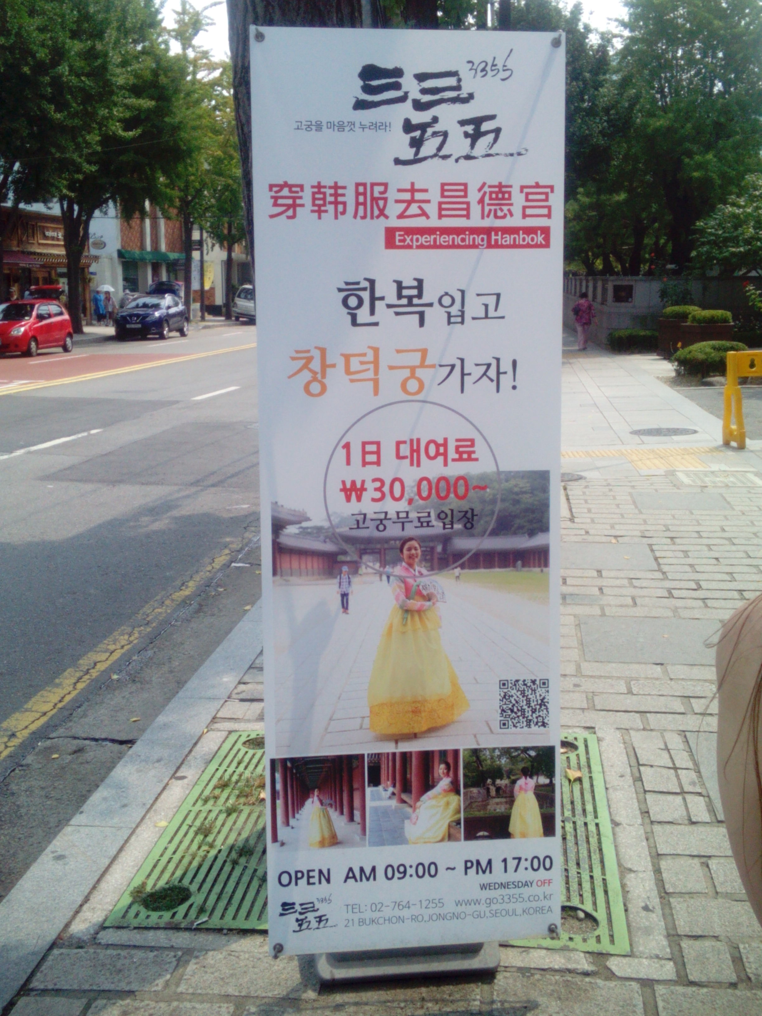 A few tea houses in Bukchon Hanok Village will also offer you to try on the traditional Korean dress – Hanbok (한복). There you will be able to take a stroll through the streets and have your pictures taken. On the other hand, if you don’t feel like having a photoshoot in this unique place, then you will have a chance to have your caricature drawn for 1000 KRW. Only if you buy something from the tea house or the convenience store, of course.