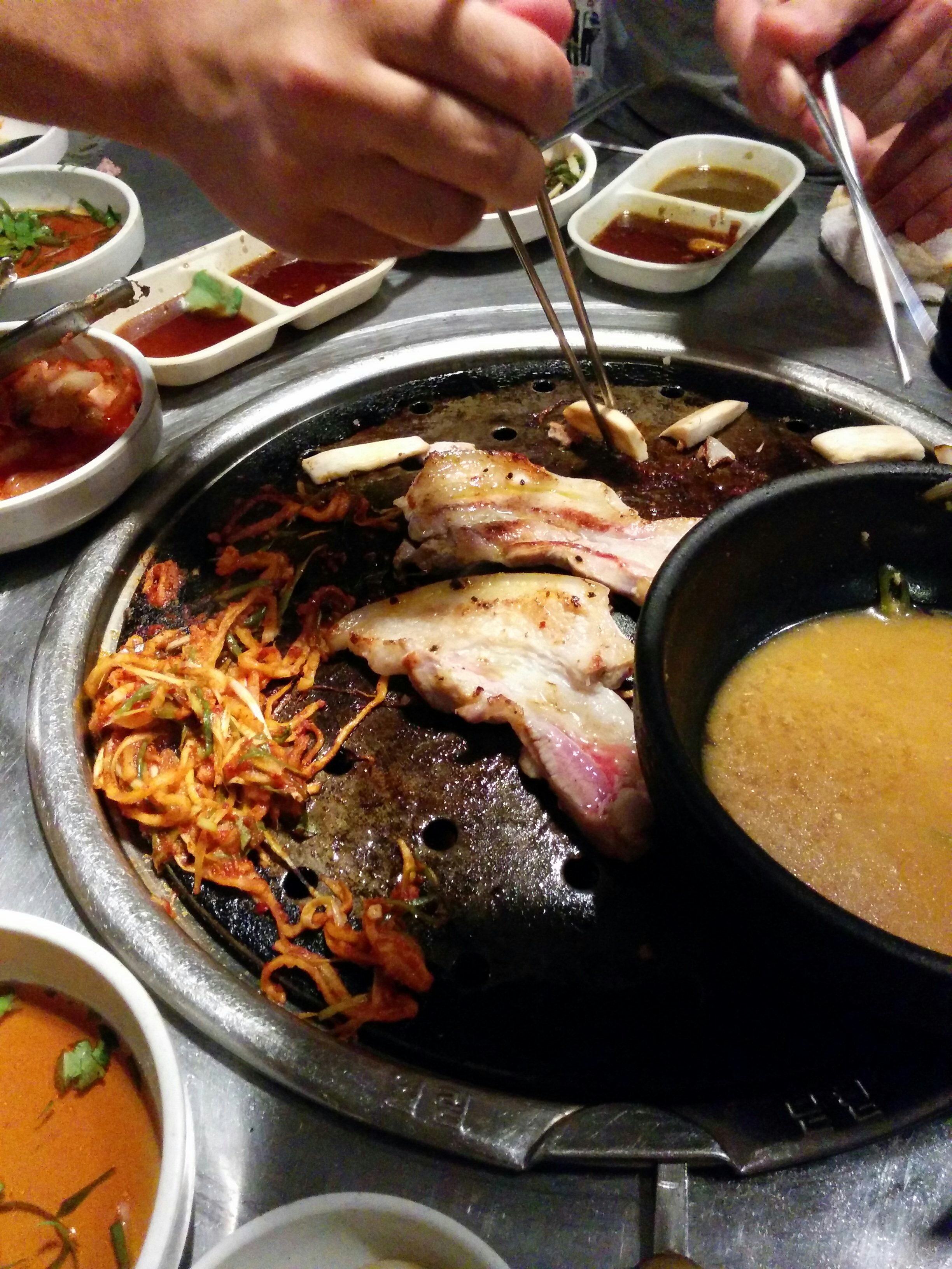After doing some research, my friends and I decided to stay in Seogwipo (서귀포) due to its proximity to some of the natural wonders we wanted to explore. Arriving late Thursday night, we soon began to wander the streets in search of Jeju pork and a drink. Wandering aimlessly wasn’t working until we were approached by a very friendly, and helpful woman named Hyan (spelling help please…pronounce “hi-ann”). Seeing the looks of hunger and confusion on out faces, she was quick to suggest her personal favorite restaurant and was even kind enough to walk us over and order a selection of her favorite cuts of pork! I don’t think pork in any other part of the world will ever taste the same now that I’ve tried the pork on Jeju!