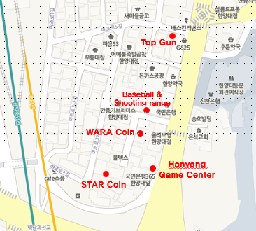 You can find all places that I introduced in the map below. Get rid of your stress with singing, playing games and shooting with coins in Wangsimni.