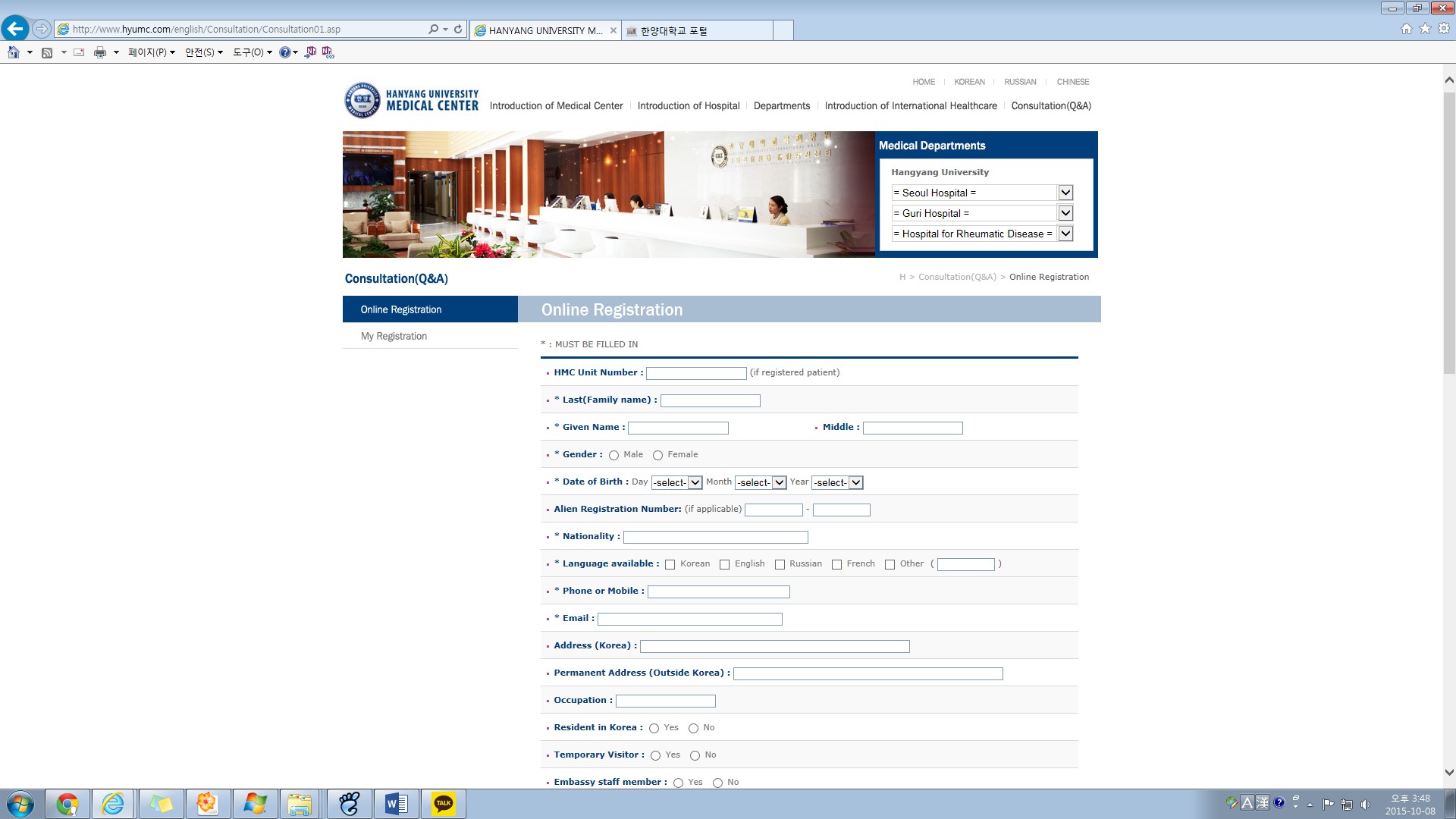 For the exchange students, click the ‘International Clinic Office’. Here’s the site domain : http://www.hyumc.com/english/International/International01.asp. Then, go to registration page : http://www.hyumc.com/english/Consultation/Consultation01.asp