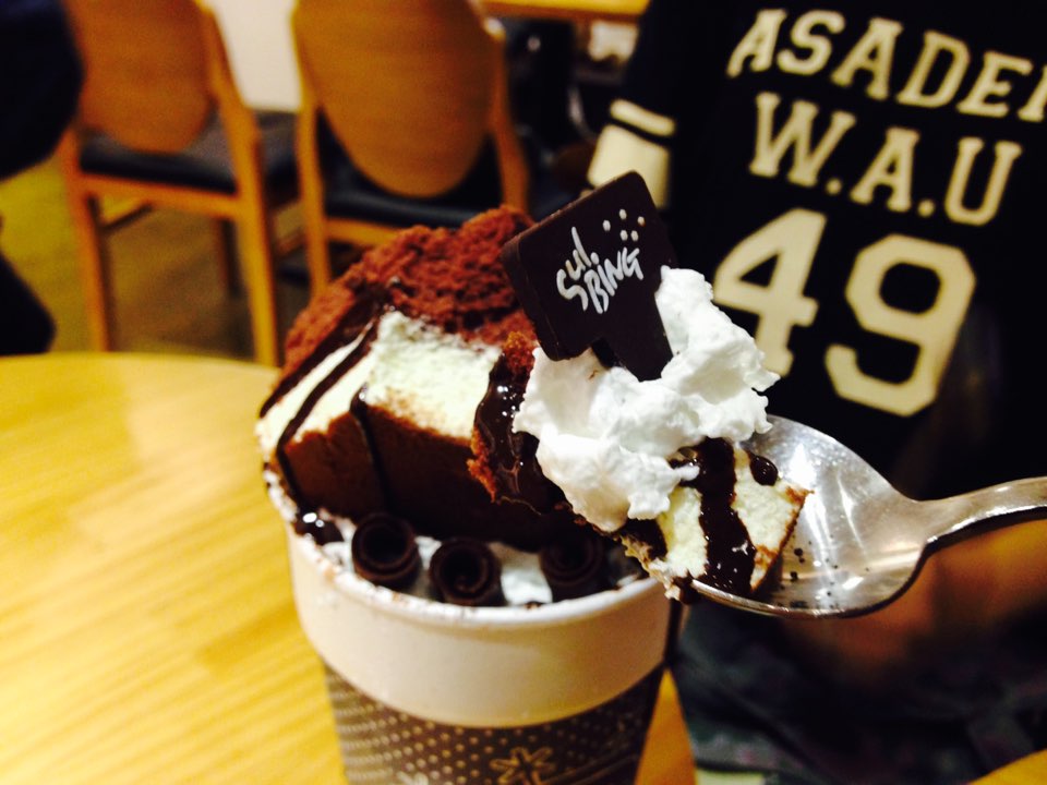 Third is ‘Sul-bing (설빙)’. I think most people are familiar with this brand. It is well-known for Korean traditional dessert-bing-su. ‘Bing-su’ is dessert the a bowl of shaved ice with sugar syrup. It is really sweet so if you get stressed by your work, you can try this one. And in Sul-bing, it sells ‘Chocolate Bing-su’-shaved ice with Chocolate, Chocolate cake, and Chocolate syrup. Sound pretty sweet, right? Its color is black, but tastes really good. The price is around 8,000~9,000 won. Some people think it is quite expensive-actually, it is-but you can try once in a blue moon if you have a sweet tooth. Some people think it is quite expensive-actually, it is-but you can try once in a blue moon if you have a sweet tooth. By the way, ‘Sul-bing’ is really famous brand, so you can find it in Wangsimni as well. It is located in near the Xeno PC room.