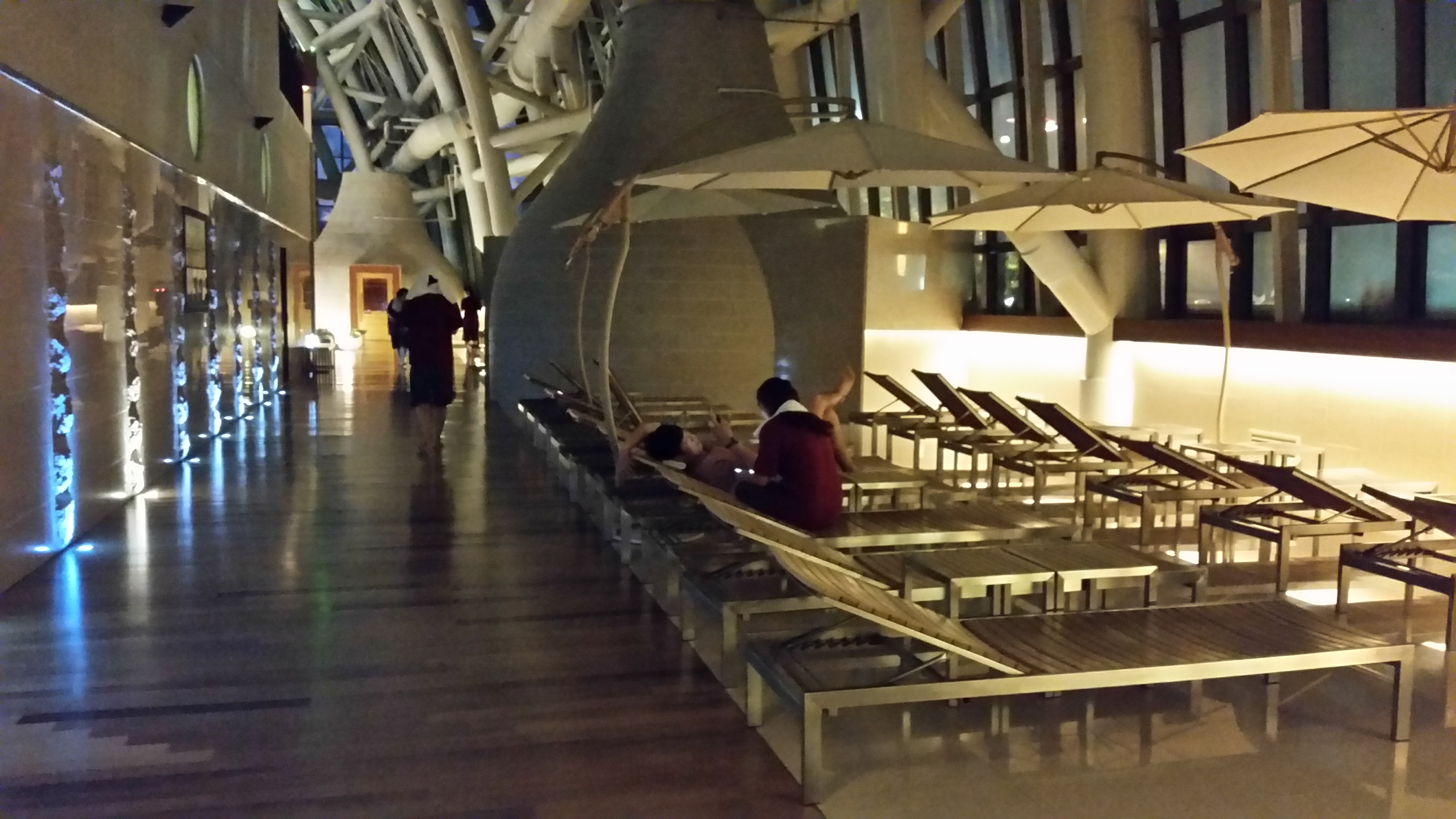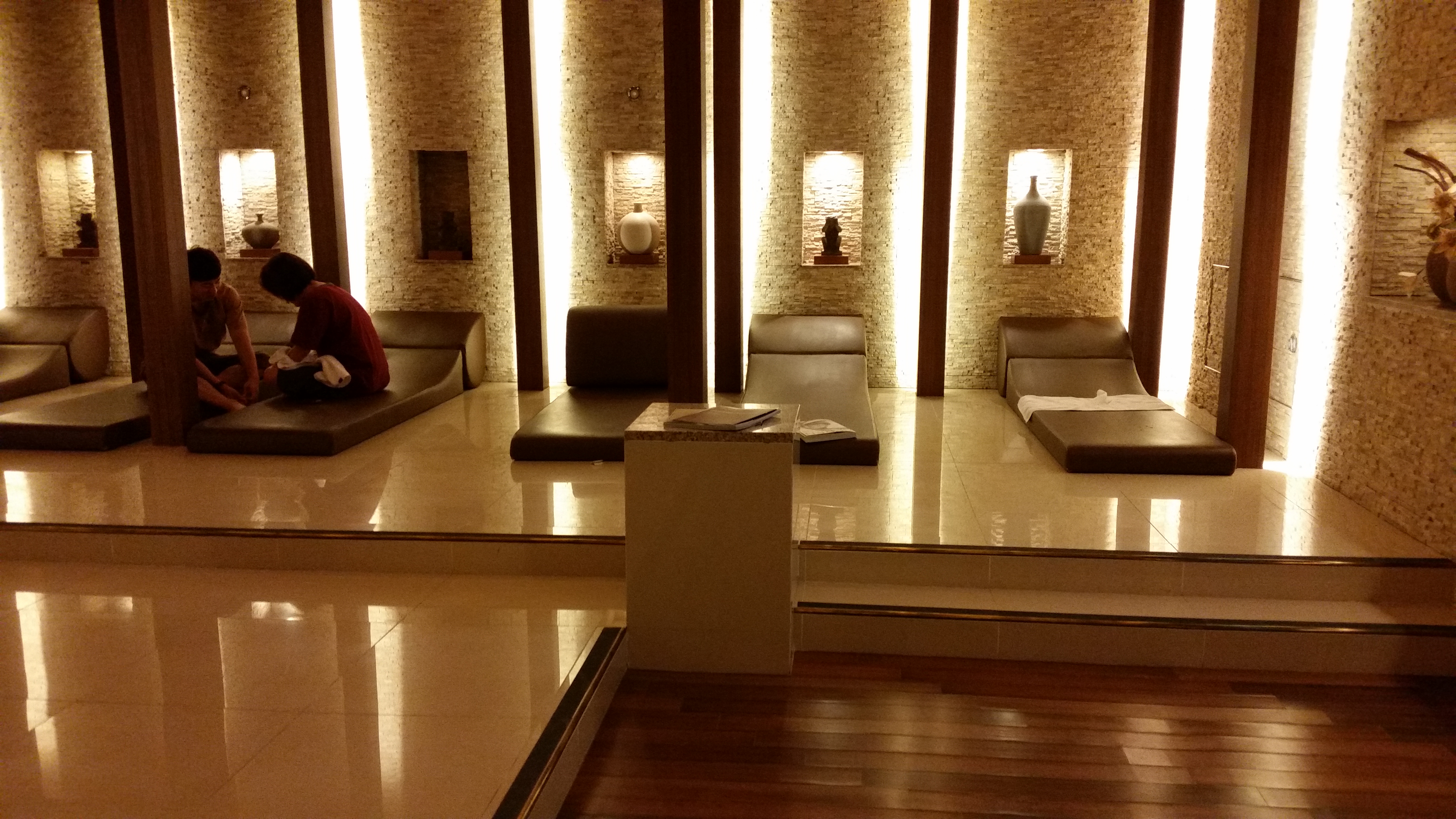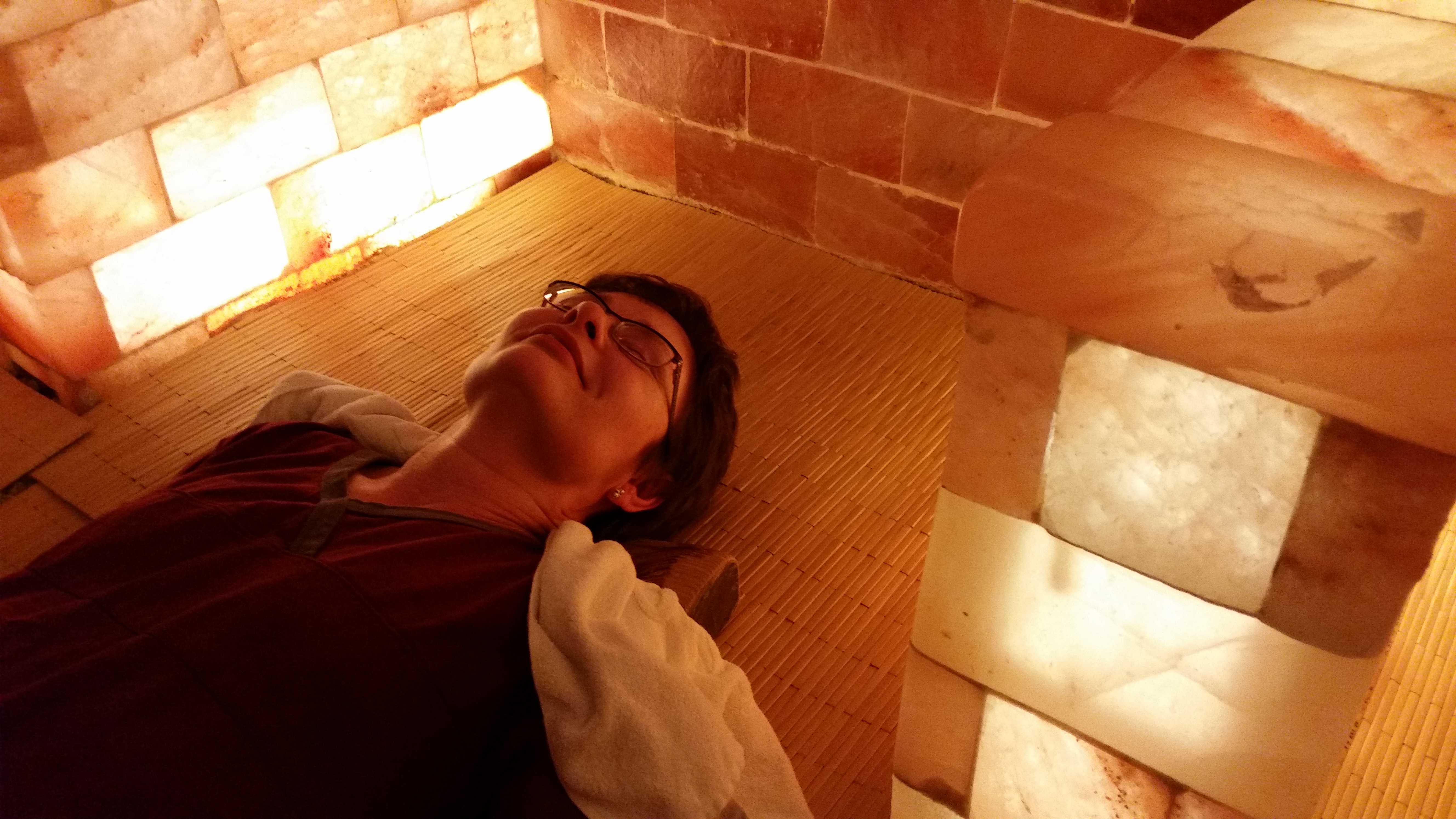 Most of the sauna rooms I visited were about 40-60 degrees hot, except for the ice room, which was only 16 degrees. Coming from Finland, where sauna was invented, the temperature didn’t feel that high (I’m used to about 80 degrees) but it was fun to see all types of saunas from around the world. Many people had their phones with them in the sauna rooms and were lying down on the floor, or sitting and chatting with their friends.