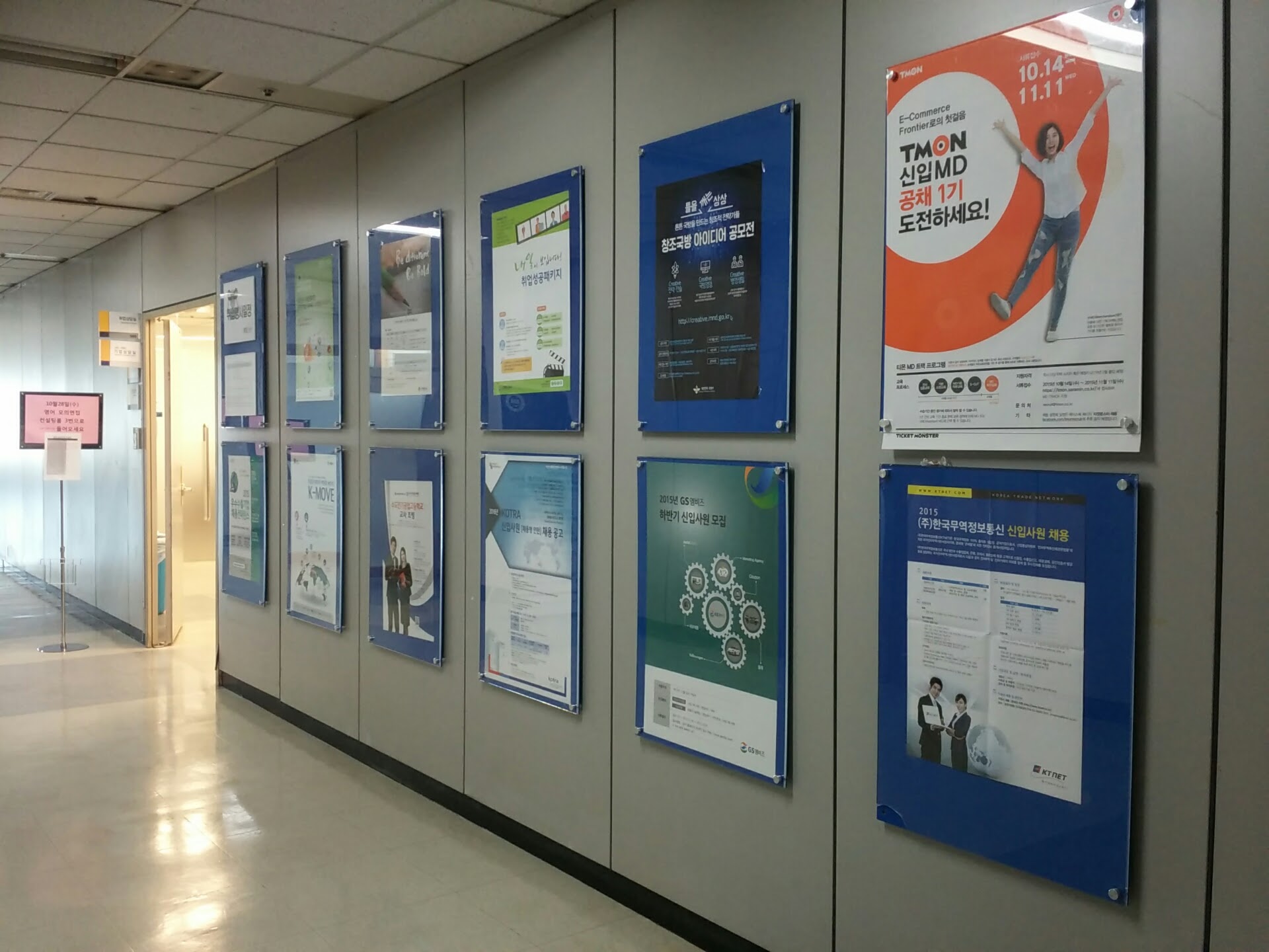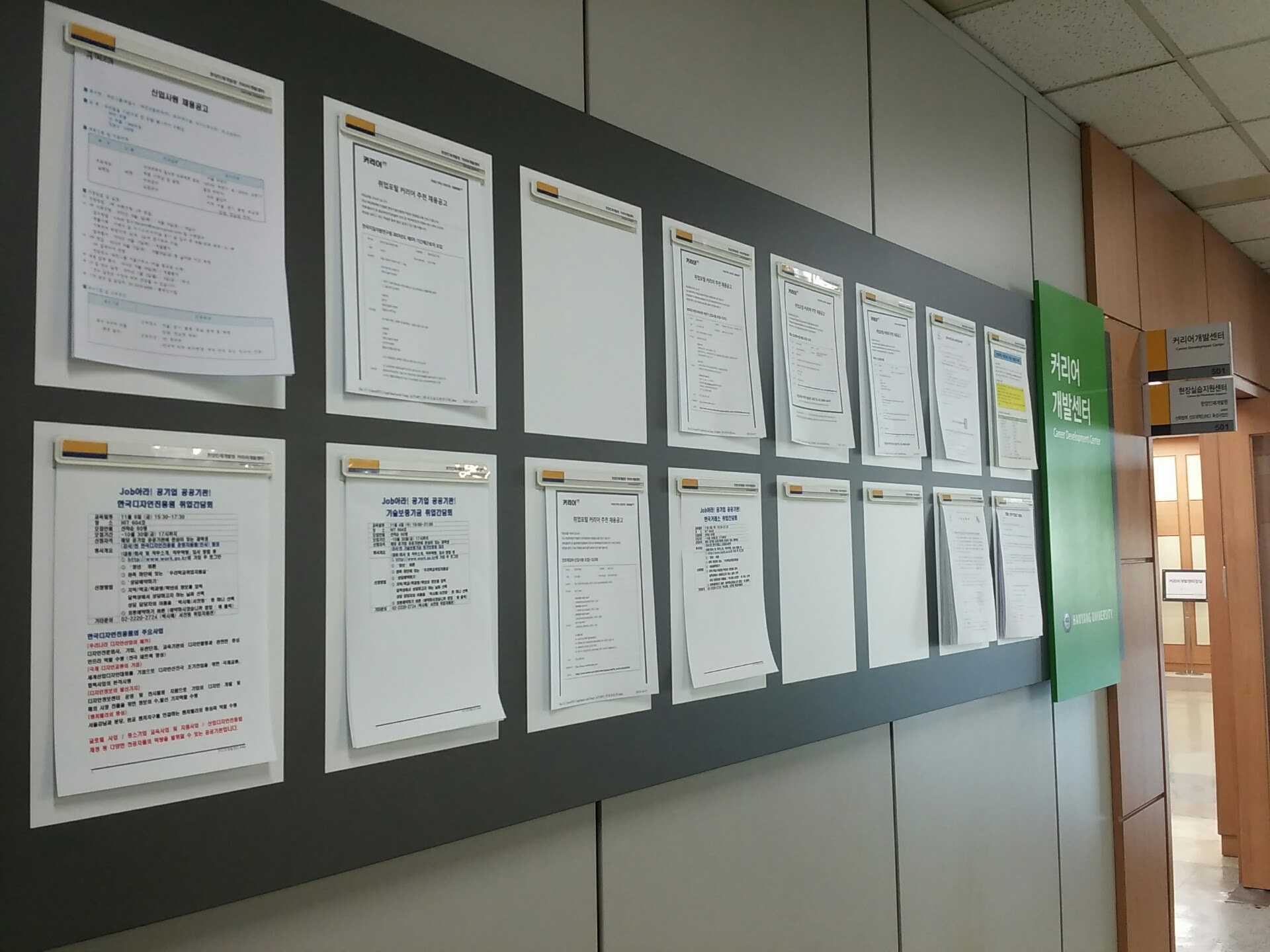 First, We can find Career Development Center. Here, students can get whatever information related to career. Not only Korean students but also foreign students can go there. It helps student to write essays, or the interview. And once or twice a year, it held ‘Career Job Fair’. Sadly, this year’s Career Job Fair was already held at September, at Olympic Stadium. There, about ten big companies make a booth to have counseling with students. And for foreign students, the same Job Fair was held on Career Development Center to give detail information to them. And every year, when companies’ recruiting session starts, they pass recruiting paper to Career Center, so if students go there and ask some information, they are willing to give you some useful source.