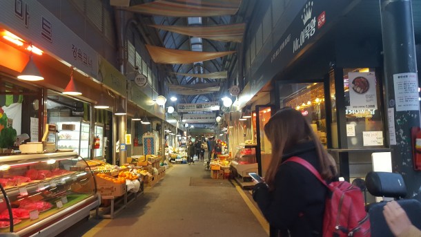 For a market open in the evenings, I noticed how quiet it was. There were a few customers walking up and down the stalls, but for the most part, it was a lot tamer than what I would expect from a night market. Probably one third of the stalls were closed and didn’t do much to Some of our Korean mentors mentioned it might have been the day of the week that we went (it was a Tuesday) or the fact that it was White Day (화이트데이), but it did slightly change the atmosphere for the evening. Additionally, I don’t think any of us were aware of the Dosirak Cafe (either that, or it was closed), so we only went up and paid for our food separately.