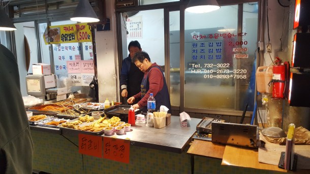Below: overall, Tongin Market was fairly quiet but there were still a number of food vendors open during the evening.