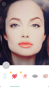 This is the first screen when starting B612. From the bottom left are ‘Face Masks’, ‘Backgrounds’, ‘Play Chat’ which is a new photo chat service they developed, and ‘Filters’. From the top left are ‘Album’, ‘Changing Frames’, ‘Changing to Selfie Mode’, and settings.