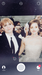 This is the first screen you will see on Snow. The bottom left is ‘Story’ where you can share the photos you take with your friends on your story. The bottom right is ‘Chat’ where you can send the photo(s) you take to a certain friend. It can be said that it is similar to Snapchat, however not many Koreans use the ‘Story’ and ‘Chat’ function. Above the shutter are (from the left) ‘face masks’, ‘backgrounds’ and ‘filters’. On the top are ‘new features’, ‘album’ and ‘change to selfie mode’. It is different from Candy Camera that it has facemasks and backgrounds, but does not have any change of frames or a timer. Snow does have a video mode; you can take videos by holding the shutter for a long time.