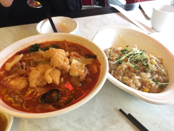 There are many restaurants in Incheon China Town that sell Chinese cuisine. However, Yeon-Kyeong (연경) is the spot I recommend. If you walk straight up the hill of China Town, there is Yeon-Kyeong (연경). There may be a line in front of the restaurant, but Yeon-Kyeong is a bigger restaurant than it looks like, so waiting in line will not take as long as you think. My friend and I ordered Yeon-Kyeong’s signature menu, White Jia-jang-meon (백짜장면) and Crab & Shrimp Jiam-pong (꽃게 새우짬뽕) as in the picture above. We also ordered some Shrimp dumplings. Jia-jang-meon (짜장면) is also called black bean noodles, so it is well known for its black color. But Yeon-Kyeong’s White Jia-jang-meon is different. It is not as salty as original Jia-jang-meon, and the sauce has small cut pieces of vegetables, pork and shrimp. This makes it easier to taste the ingredients with the noodles at the same time. The Crab & Shrimp Jiam-pong has fried crab and shrimp, and many other seafood. You might think that the crab and shrimp aren’t good because they are fried, but they are very plump and full with juices. But the food with the most filled juices are the Shrimp dumplings. They have whole shrimp inside, and I have never yet found a place better than Yeon-Kyeong for the Shrimp Dumplings.