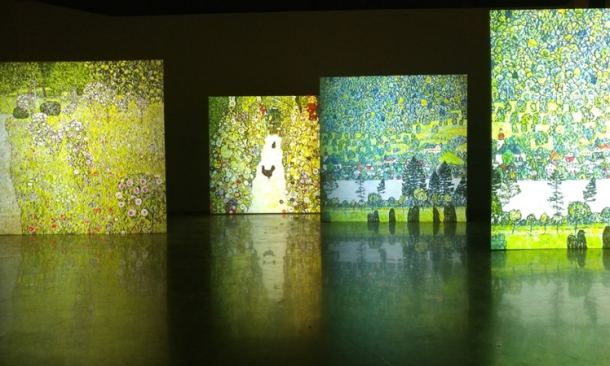 The “Stoclet Frieze” exhibit is an LED screen show with moving art depicting the tree of life.