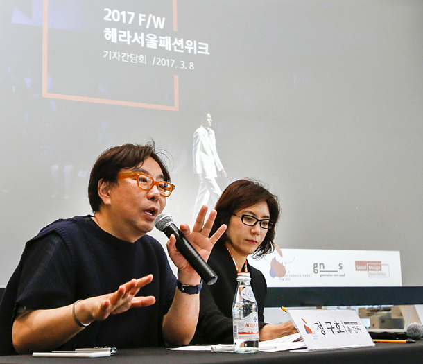 Jung Ku-ho, Hera Seoul Fashion Week’s Executive Director is the mastermind behind the events, speaks at a press conference (Source: http://koreajoongangdaily.joins.com/news/article/article.aspx?aid=3030733)