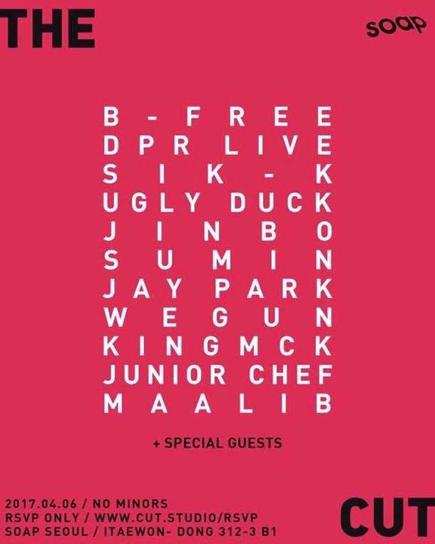 The promotional lineup poster for The Cut Studio’s event at Soap Seoul (Source: https://www.facebook.com/soapseoul/photos/a.224221584709376.1073741828.207037719761096/244177916047076/?type=3&theater)