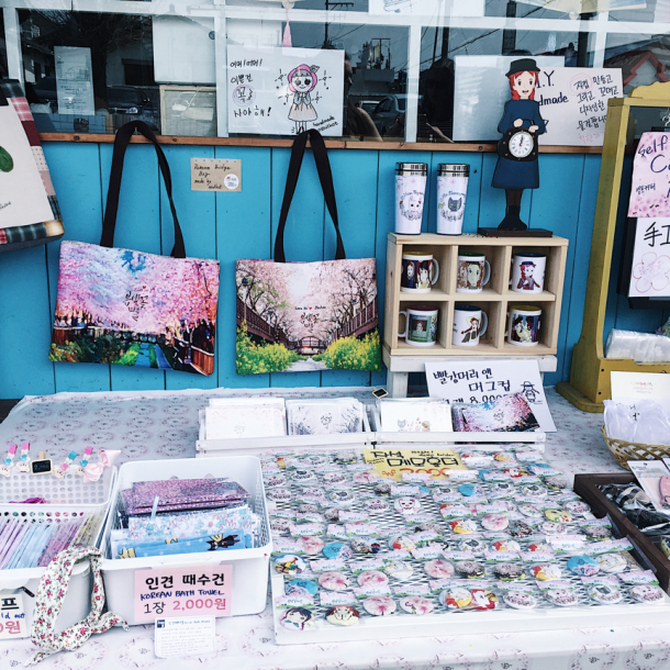 Once we’ve arrived to Jinhae, our first stop was at the Yeojwacheon Stream (Cherry Blossom Road) (여좌천-벚꽃명소). This is one of the most famous places to see cherry blossoms, and take some breathtaking pictures. The trees form a tunnel around the stream. In the center, there is a long bridge, known as the Romance bridge. For those of you who don’t know, this bridge is the location where the two leading characters from the popular TV series Romance (로맨스) first met on their trip to Jinhae. After this episode was aired, this bridge became instantly famous, as is nowadays more widely known as the Romance Bridge.