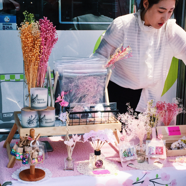 You will find lots of food stands. Some things you can expect to find include corn dogs, tornado potatoes, egg breads, and the very famous cherry blossom flavored drinks