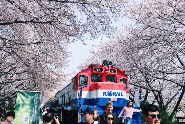 The second stop was at the Gyewonghwa Station (경화역). Even though this is a railway that is currently out of service since Febraury 2015, it has been listed by CNN as one of the top 50 most beautiful places to visit in Korea. The cherry blossoms surrounding this railway appear to be bigger and older than the ones at the Yeojwacheon Stream. It’s a little bit of a different feeling, but both are as beautiful.