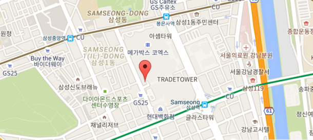 Get off at Samseong Station (삼성역) (Line 2), exit 5 or 6.