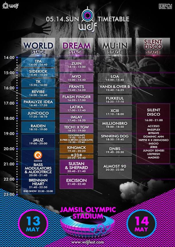The schedule and lineup for Seoul DJ World Festival 2017 (Source: http://wdjfest.com/)