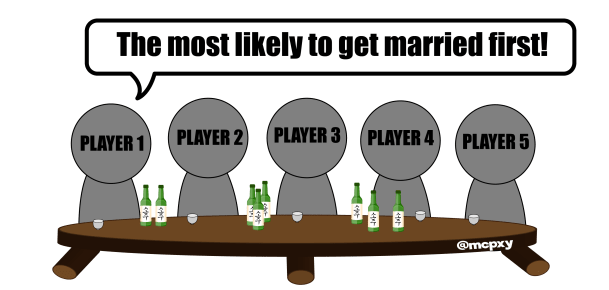 The statements people in this game are “Who is most likely to…”. The “it” person makes a statement about whether who would be most likely two. Then, the group counts to three and on three, all point ot who they think would best fit the statement. Whoever has the most votes has to drink.