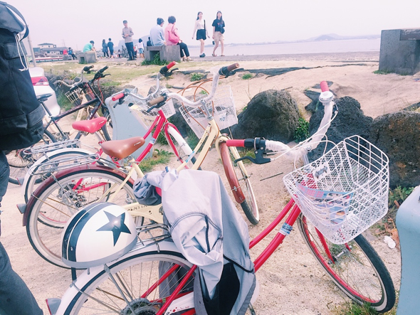 Getting around Udo Island is very convenient as there are a few options available; Bike, motorcycle, car, scooters, or bus. If you want to drive, you need either a Korean or an international driver’s license. We decided to rent bikes, and it cost 5,000 Won for 3 hours. The first location is the Seobin Baeksa (서빈백사), a white beach that has appeared regularly in films and TV commercials thanks to its breathtaking white sand and emerald sea color. The sea. This makes Seobin Baeksa one of the most popular tourist attractions in Jeju-do, along with Hallasan Mountain [2].