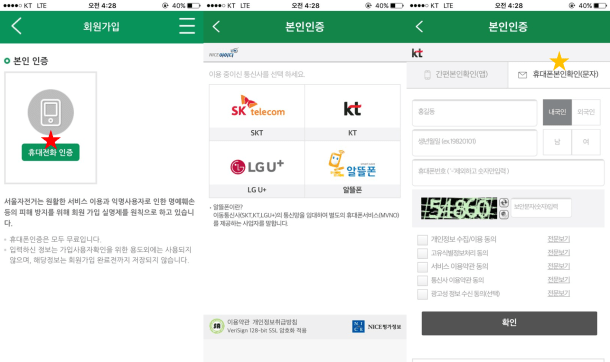 You then have to confirm yourself by your cell-phone. First click 휴대전화 인증 which means ‘confirm using phone’. Pick your telecom and then go to 휴대폰본인확인(문자). From the top to right is Name(at 홍길동), then on the right is 내국인 외국인 which means (Korean or Foreign). Next is 생년월일(Birthday), and 남/여 boy/girl on the right. On the bottom put in your cell-phone number without the hyphens. Enter the security code and check all the boxes except the last one which is choose able. Now you get your code number. Enter the code number that is sent to you by text message, and you are confirmed.