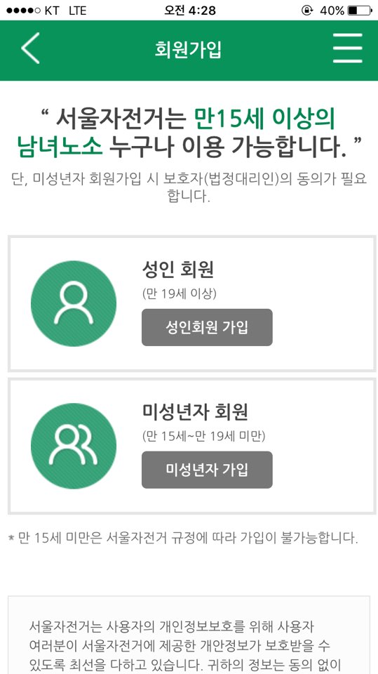 Since you will be an adult member, click on the top gray button that says 성인회원가입(Adult member signup)