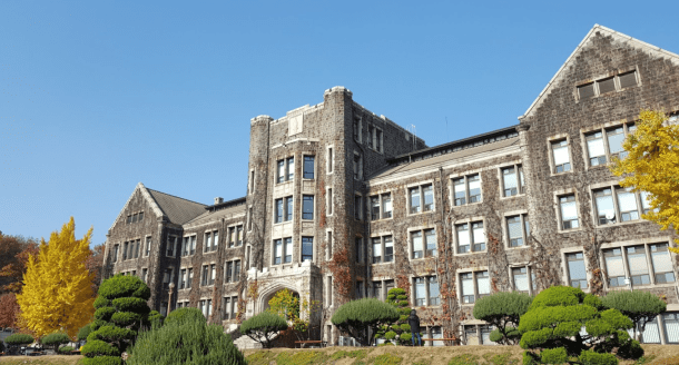 ‘Yonsei University is a private research university in Seoul, South Korea. It is one of Korea’s three SKY universities, considered the most prestigious in the country. Yonsei was established in 1885 and is the oldest university in South Korea. In the symbol of Yonsei University, there is a shield. In the shield, ‘ㅇ’ means sky, ‘ㅡ’ means land and ‘ㅅ’ means human. On the left side of ‘ㅇ’, the book is truth; on the right side, the torch is freedom. The shield defends these two ideologies.’ (Source: Wikipedia)