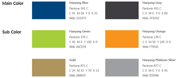 The main colors of Hanyang is Blue and Gray. The color also known as ‘Hanyang Blue’ is easily found and used everywhere. You can find students wearing baseball jackets or T-shirts in this blue. The symbol colors are used in the school information brochure, the official website and more.