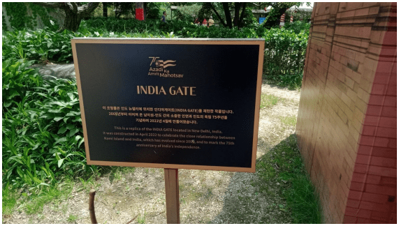their 75th independence year, they put up this board and there is a mini India Gate (a